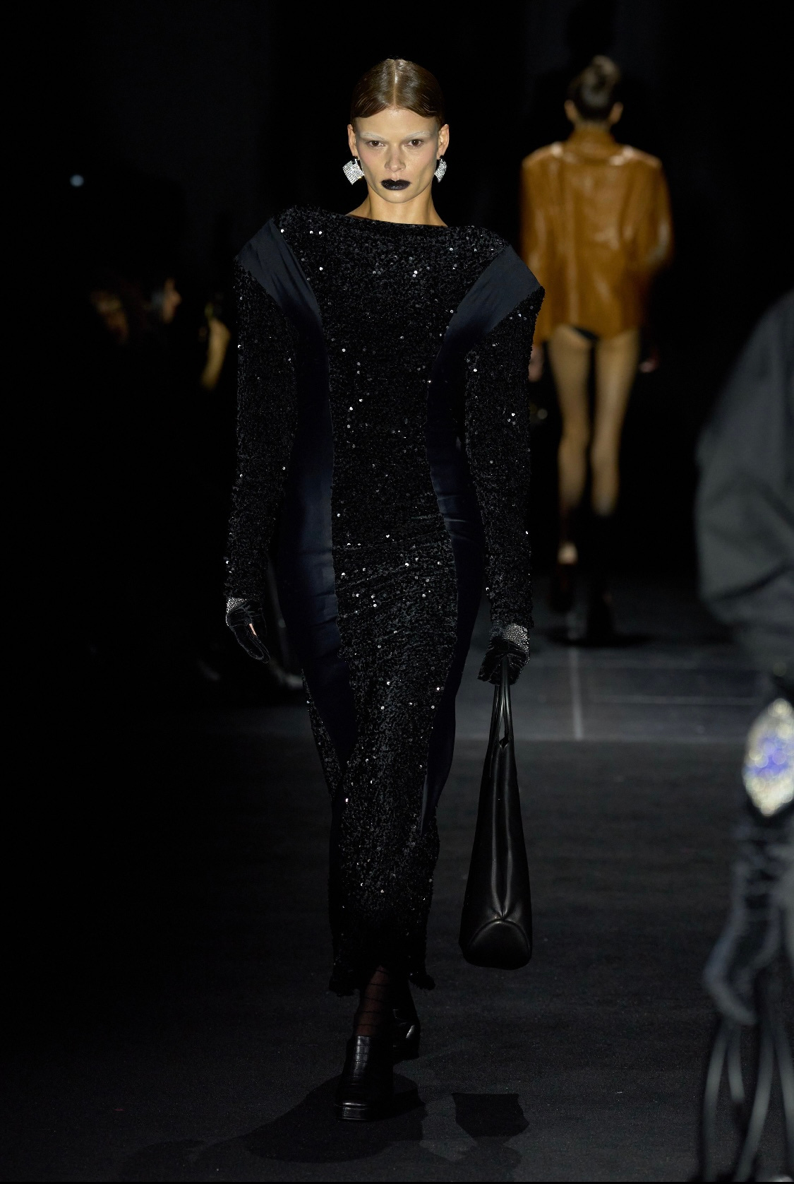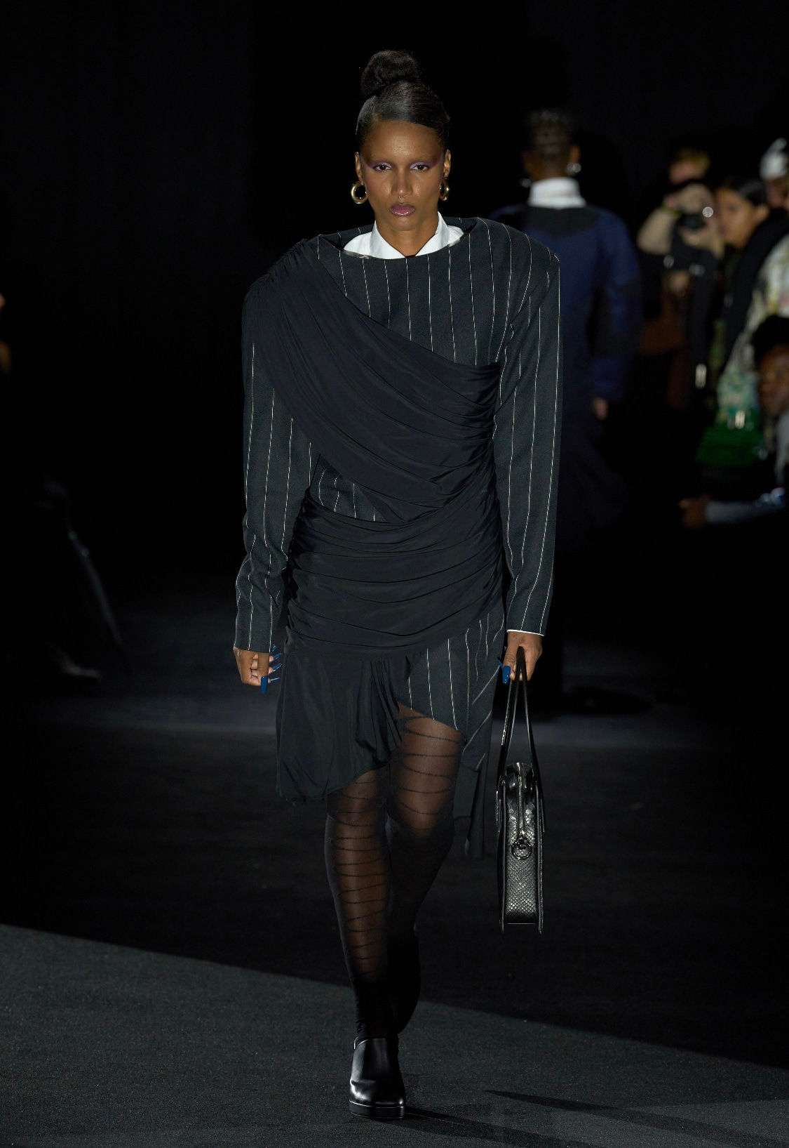 I first became aware of Luar back in 2019 when Raul Lopez presented his Autumn/Winter collection. My attention was drawn to a pinstripe dress with broad shoulders and belts intertwined to gather it. It was certainly THE look of the collection. But I think it was overshadowed by all the fur and fabric combinations. Fast forward to this season, he’s perfected this pinstripe look. Since Lopez’s A/W 2019 collection there’s been this common theme of suiting, sporty, and sexy. And this collection is a beautiful balance of all three. I also believe that these 3 S’s demonstrate what American women are wearing today. Pieces that have form or accentuate their form. There’s a level of ease and a need for convenience, not much thought should have to be put into dressing, their pieces should get them through the day, the night, and everything in between. American women are all about practicality with a sprinkle of glamour, and I really love Lopez’s interpretation of this. Mastering his patchworking skills he’s integrated that structured tailoring he’s been inspired by over the years with nylon athleisure. The strong shoulders with a soft flowy bottom are brilliantly harmonious. It’s a combination that’s striking but still delicate, which I’m all about. I think Lopez’s perspective is personal, concrete, and consistent. His designs are remnants of the past that he continues to reflect upon and redefine. There’s this sense of graduation, the Luar woman has stepped into a new era. A woman who has always been experimental and really bound by no limitations has finally found confidence in what works for her. She’s bold, elegant, memorable, and forever a risk-taker!
